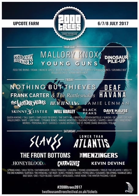 They join a huge line-up which includes 5 headline bands across the 3 day festival with Mallory Knox as the Early Bird Thursday night headliners, Nothing But Thieves and Frank Carter & The Rattlesnakes as the Friday night headliners while Slaves and Lower Than Atlantis share the Saturday top spot.