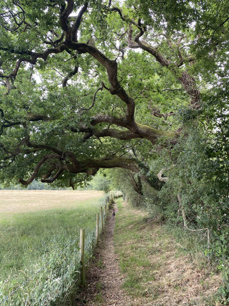 So Frida (my lurcher) and I set off on a footpath cutting behind a beautiful church with the aim of looping back through a large section of new territory. Immediately the busy roads became a distant memory and instead fields opened up around us as we pushed through tall tufts of grass, ducking underneath the occasional fallen tree and admiring the forked branches of ancient oaks overhead.
