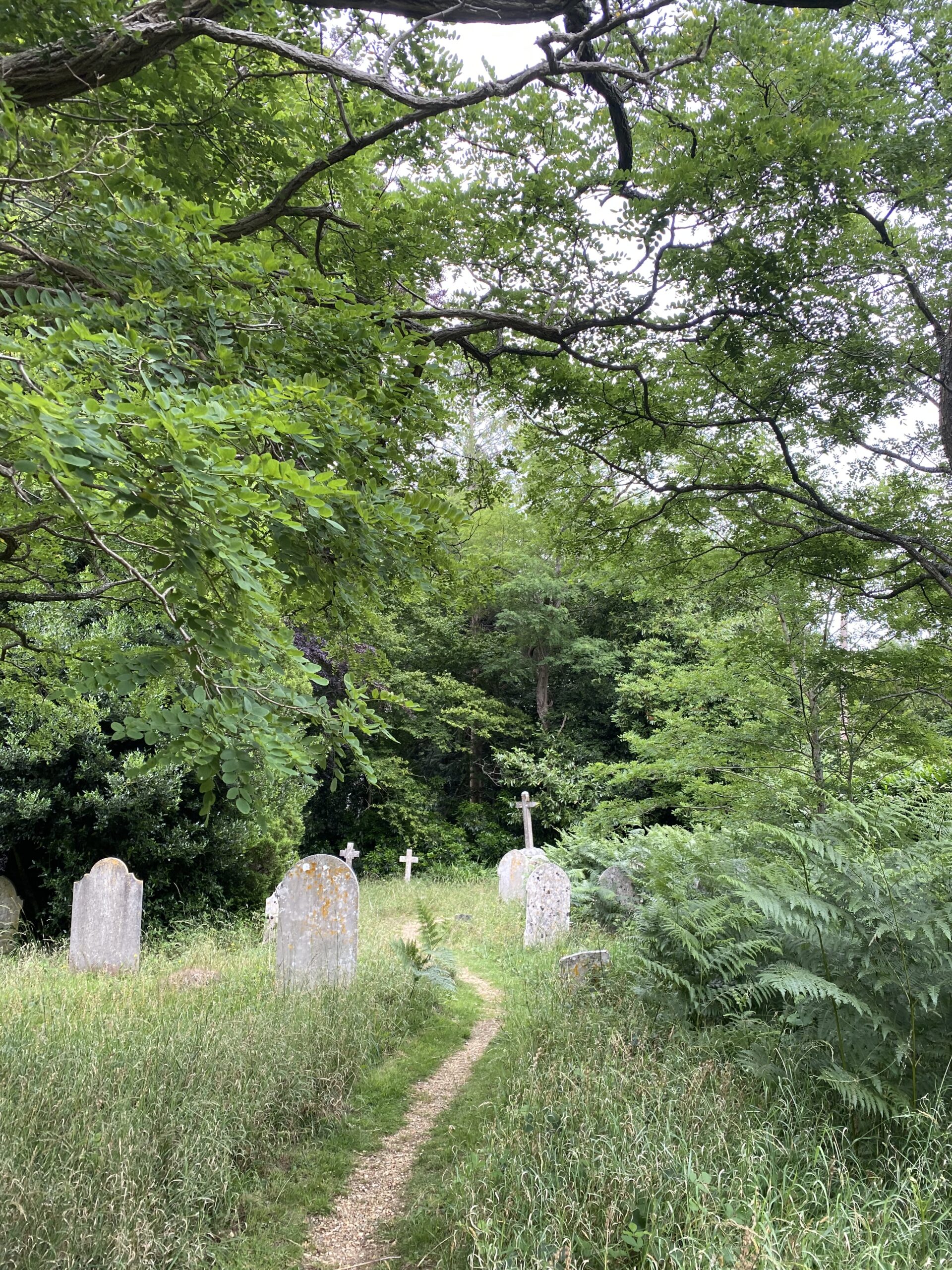 As we continued to battle through unruly grass, nettles and thistles, now a good few hours from the starting point, distance crossed my mind. Here I was, shoes choked with seeds and T-shirt damp with sweat, and we were only a tiny distance on the map from the church. We stopped at another place of worship, this time one that had always eluded me. Amongst gravestones gently embraced by brambles and ferns, I sat on an old bench listening to Frida lap at her water bowl. In two hours I’d travelled a stone’s throw but I had seen so much with the countless butterflies, wildflowers and crooked styles, all accompanied by a beautiful birdsong.
