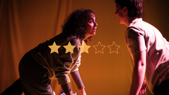 It’s the type of play that could suffer if the acting wasn’t up to scratch. Fortunately, in Nadi Kemp-Sayfi and Annabel Baldwin, we’re treated to two performances with a great deal of chemistry. They clearly know what to do with the script they’ve been given, delivering lines both comedic and dramatic with dexterity. The play is at its best during exchanges between the two of them rather than the intermittent monologues or scenes with other characters, so it’s fortunate these compose the play’s majority. Funny lines recounting relatable plights of modern Londoners—poky flats and extortionate coffee—are a common source of humour, bound to generate a laugh from any capital dwellers, and the way the two riff off each other as they deliver such lines is a lot of fun to watch.