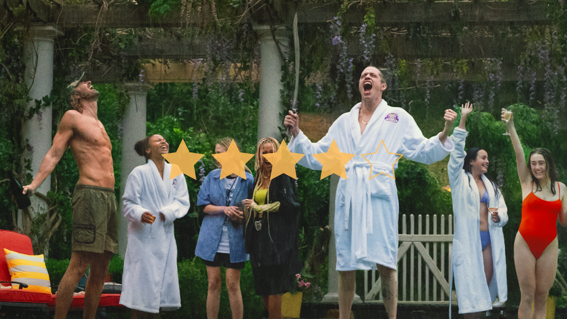 In a cast of pitch-perfect performances, Maria Bakalova holds her own. She shines as Bee, a working-class student just trying to fit in with her wealthy girlfriend’s friends. You feel every emotion that Bakalova feels intimately—every moment of nervousness, every look of fear feels so honest that it’s almost impossible to not take her side. She gives by and large the best performance here, which is saying something when you consider the fact that everyone in this film is excellent in their assigned roles. Pete Davidson is the perfect image of a millennial boyfriend, Rachel Sennott plays a valley girl like no other, and Lee Pace is a convincing (and often unnerving) outsider. Every character feels fully fleshed out and completely individual, but in a sea of great performances, it is Bakalova’s earnestness that will no doubt win audiences over.