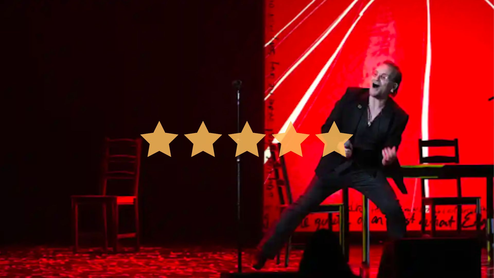 Moving moments alternate with lighthearted ones, following the narrative rollercoaster of his autobiography. “Larry! Can you feel it?” Bono screams into the microphone. “Larry! Can you hear it?”, he dramatically wails while putting a leg up on an empty chair. The intro of ‘I Will Follow’ starts playing, and the public starts clapping. However, with a swift hand movement, the frontman who once loved reassurance, signals everyone to quieten down. It was not clear whether that was just Bono or Bono acting like his father who never endorsed his son’s eccentric lifestyle. Either way, Hewson took a step back to reach “another level of navel-gazing”, as he put it.