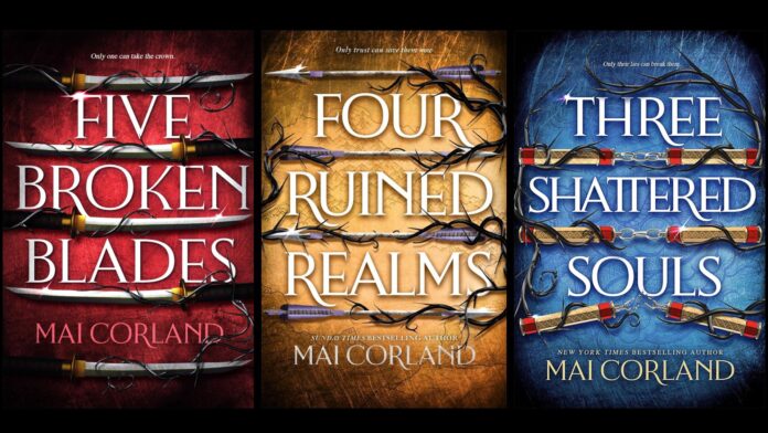 The Broken Blades is a fantasy trilogy by Mai Corland, with book one, Five Broken Blades, and book two, Four Ruined Realms, out on the shelves, and the third and final instalment, Three Shattered Souls, was released 15 July 2025.