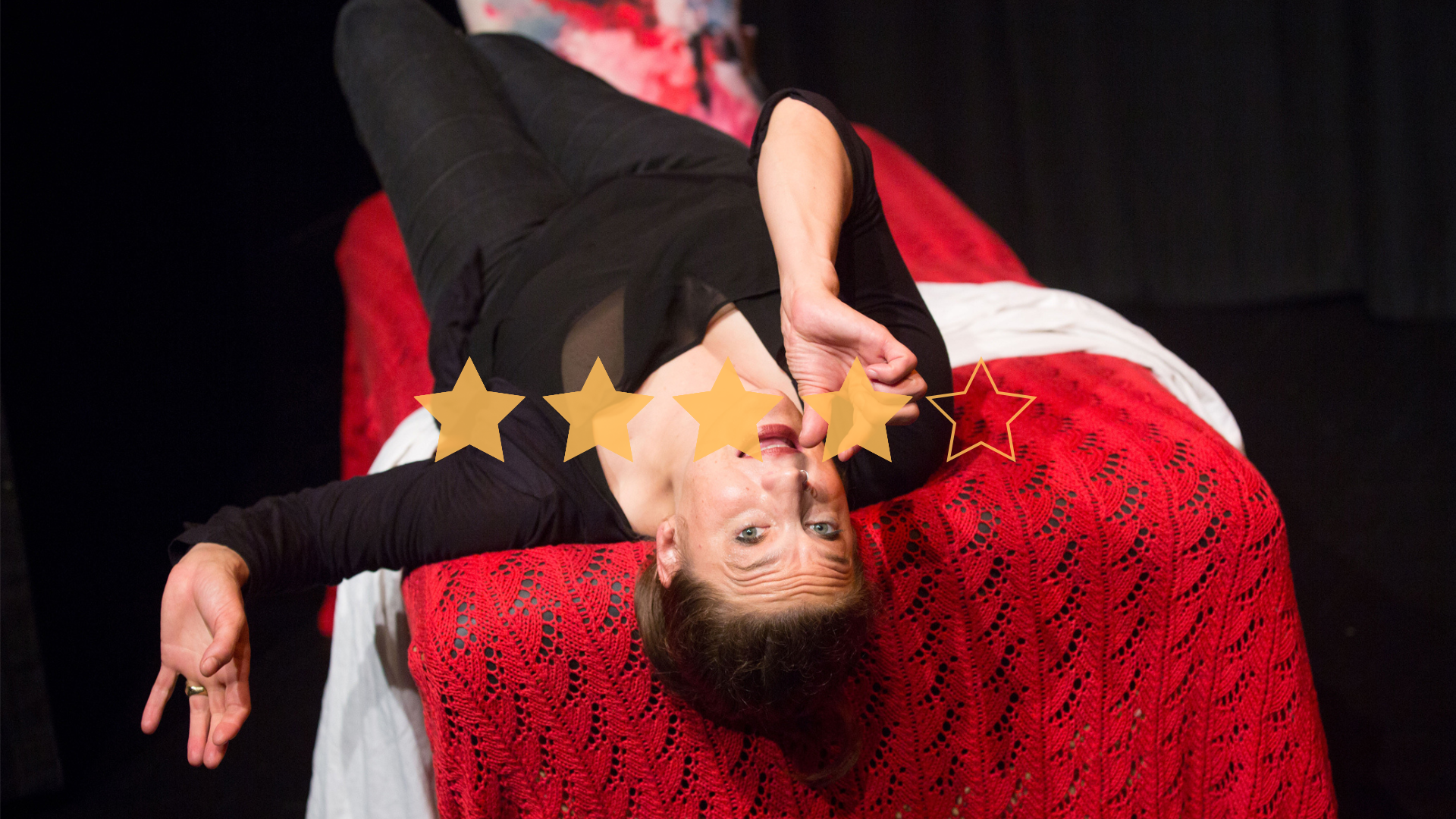 Her storytelling style alternates from being quirky and heart-warming to shockingly visceral and distressing, showcasing Raven’s skilled physicality and sharp writing skills. This is adeptly showcased during her melodramatic re-enactment of a scene in Spring Awakening in which the mother lies about the nature of conception, claiming a woman must love her husband “with all her heart” in order to conceive. Her dynamic facial expressions and line delivery elicit steady laughter from the audience. However, this scene takes on a more profound importance later on when she discusses her relationship difficulties. By incorporating harsh irony, Raven inserts a sobering reminder of the painful struggles mothers can face while simultaneously mocking the lack of adequate sexual education services.