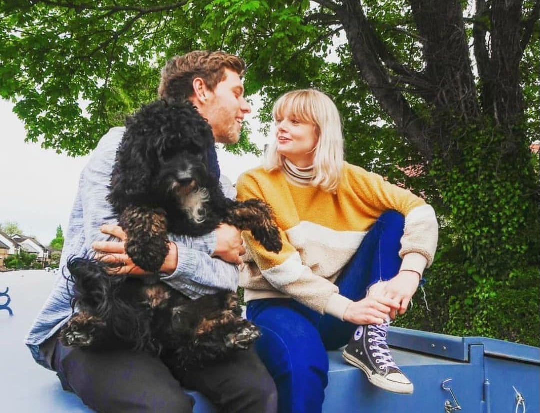 Gabby Heneghan, 26, and Calum Henderson, 28, live with two-year-old cockapoo Bilston on their recently renovated houseboat, and are currently moored in London’s Little Venice during lockdown.