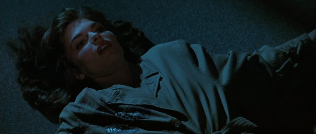Very early on in the film, Catherine is being interrogated by the police. A handful of policemen sit in a row, ogling at her bare legs. She sits in front of them, bathed in white light like she’s on stage, playing up for an ogling crowd. At one point, she uncrosses her legs, and you clearly see her vulva (in a cruder copy of a moment from Double Indemnity). Fourteen years later, Sharon Stone claimed this scene was filmed without her knowledge and included without her consent. This is problematic, for the same reason why it was problematic for Marlon Brando to—without consent—humiliate Maria Schneider during Last Tango in Paris with That Butter Scene. Stone says that director Paul Verhoeven asked her to remove her white underwear during filming as they reflected light on the camera lens, assuring her that only a shadow could be seen (a claim that Verhoeven strongly denies). Erotic thrillers only truly work when everyone is in on the joke; if true, why humiliate your lead star, who plays a self-assured woman of genius-level intellect, with such a cheap move?