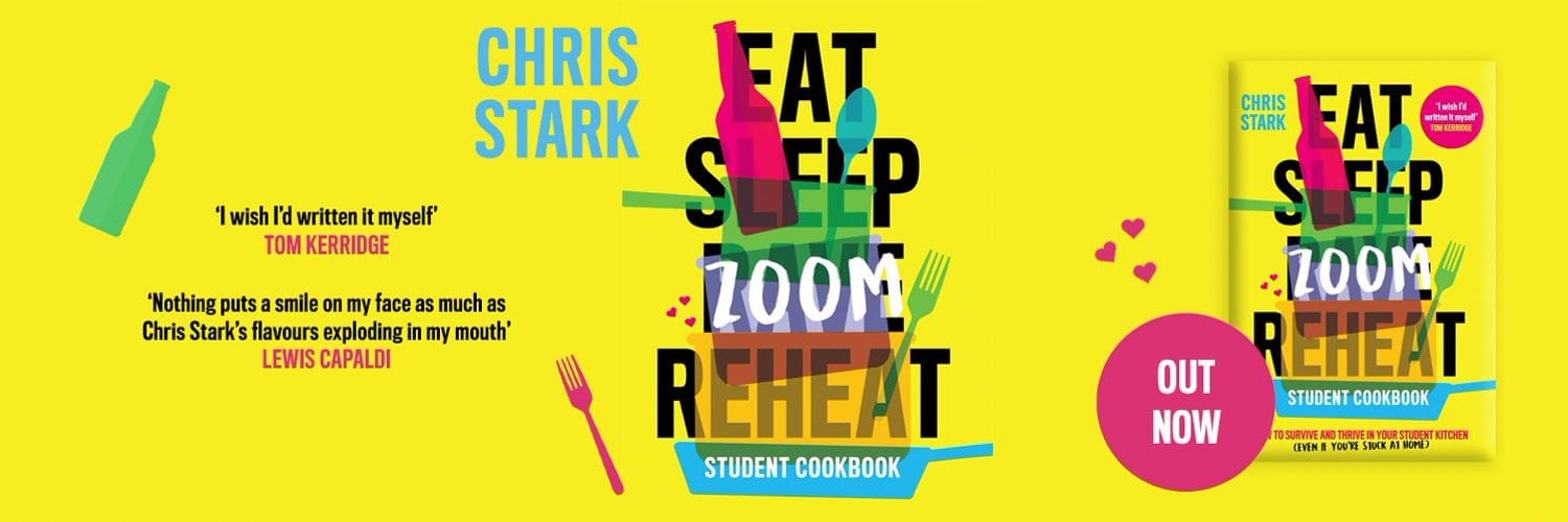 Having told the stories of his adolescence and university years in his hit radio feature 24 Years at The Tap End, for years and becoming a household name in radio and television, I wanted to chat with Chris about his new cookbook for students, Eat Sleep Zoom Reheat, ahead of what is set to be a very different Freshers.