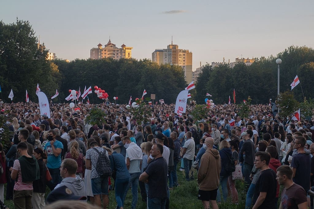 July saw the largest rally held in Belarus since the country’s independence from the Soviet Union in 1990. Approximately 25,000 gathered in Minsk’s Bangalore Square alone to support Tsikhanouskaya – an unmistakable sign that this year’s election was going to be different.
