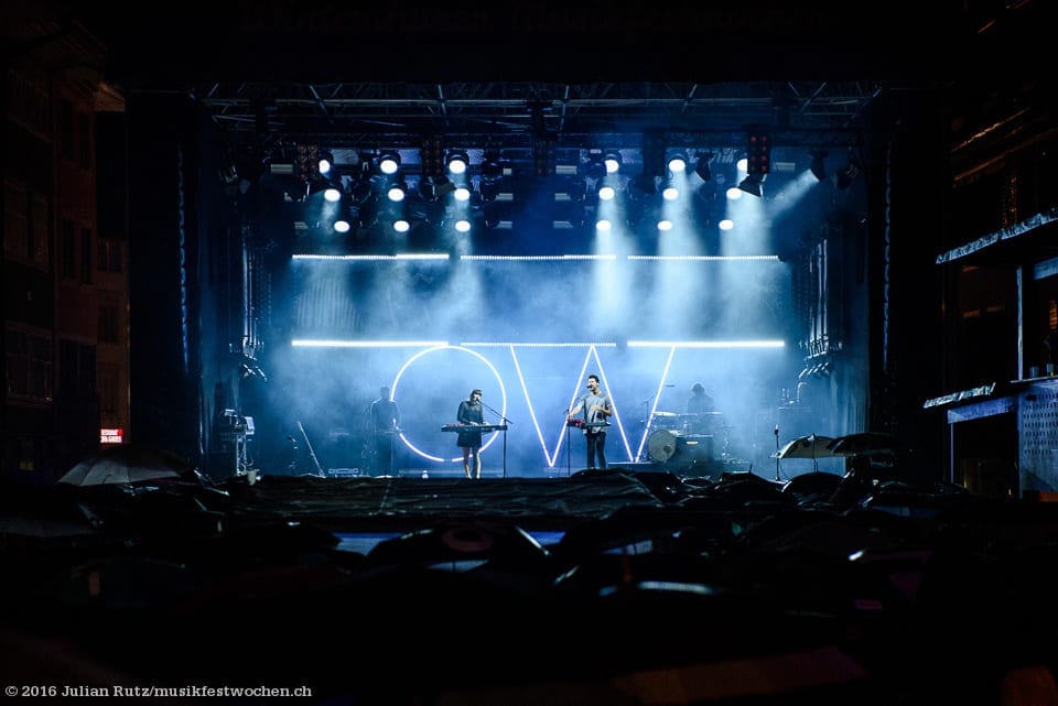 The crowd continued to grow as people eagerly awaited the arrival of alt-pop duo Oh Wonder. Having seen the band a few months ago at a small venue in Glasgow, I was excited to catch them in my hometown and see how their set would translate to a larger stage. While their vocal ability was just as impressive as it was the first time Josephine and Anthony maneuvered the stage with a new found confidence. As it was the band’s first time in Switzerland, it seemed that they had no idea what to expect but were pleasantly surprised by the turnout. Their set began with the track ‘Livewire’ and their beautiful harmonies and energy breathed life into the crowd. As they continued the skies opened up but that did little to deter anyone from dancing and singing along. When the set eventually ended with the standout song ‘Technicolor Beat’, everyone was soaked and satisfied.