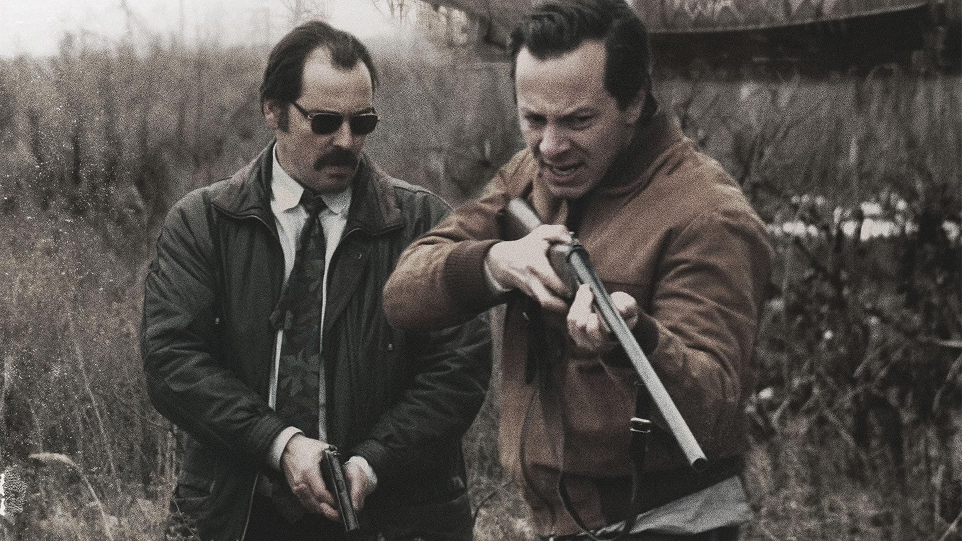 A village of turmoil and corruption, Löwitz doesn’t wait for the detectives to meet before letting our first, the unsuspecting Patrick, get a glimpse of exactly how things work around there. An eye-catching, but dismal aerial shot shows a landscape filled with swamps, neglected grass, and dingy trees. Distracted by his map and a packet of cigarettes, Patrick swerves past a cow on the road and into a swamp. The road sign might as well read “Do not enter: misfortune ahead.”