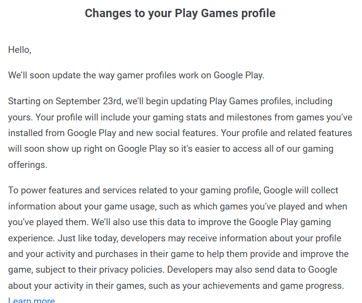 The company disclosed the change quietly, publishing on Google Support Help page and emailing Play Games users directly. According to Google, the revamped profile will display gameplay statistics, milestones, and new community-facing social functions. “To power features and services related to your gaming profile, Google will collect information about your game usage, such as which games you’ve played and when you’ve played them,” the notice states. “We’ll also use this data to improve the Google Play gaming experience.”