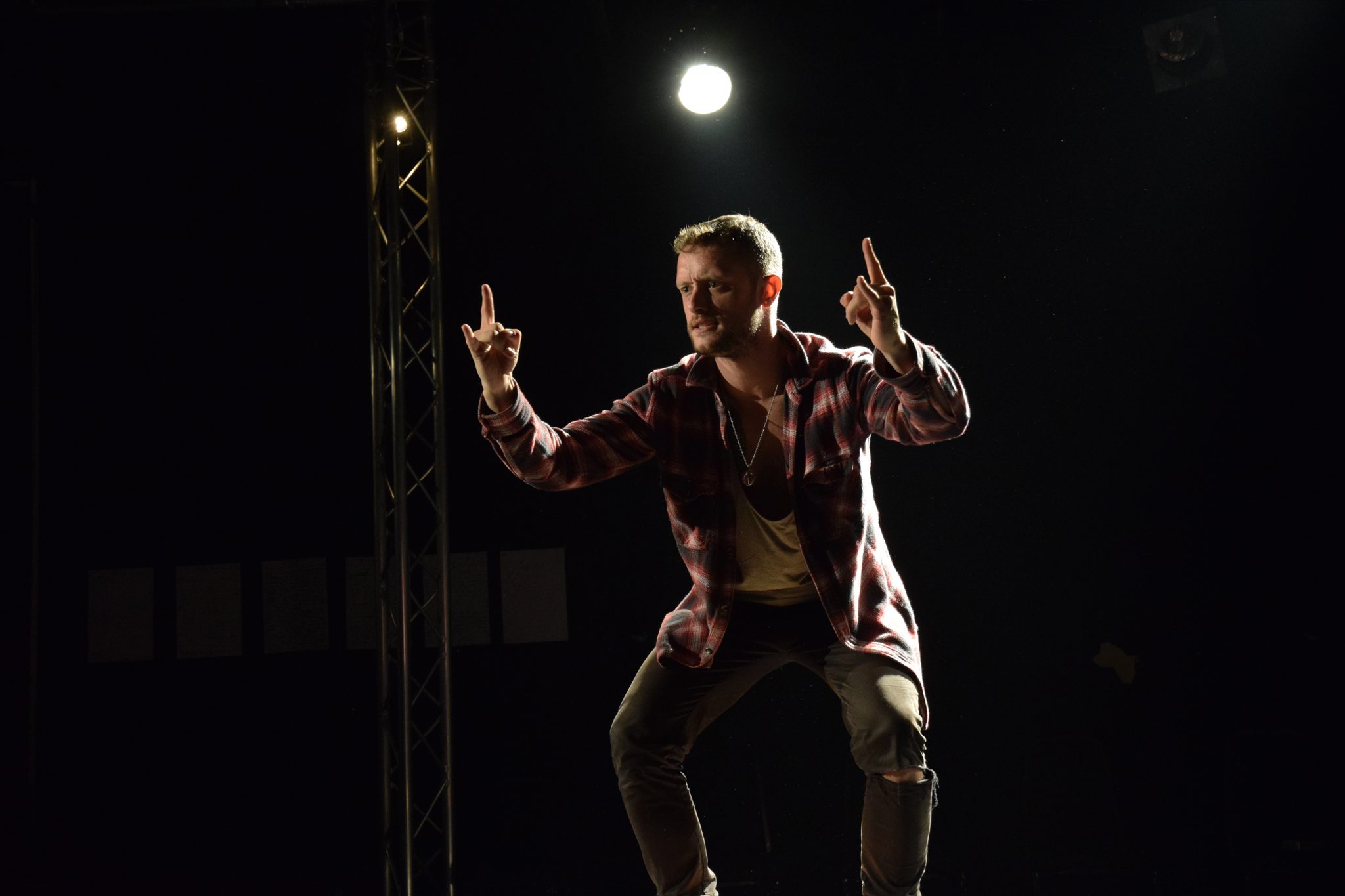 If you could read a book that someone else has written about your life, would you? For the world-renowned lead singer of a legendary rock band, reading his biography is a menacing experience. Gutter Street Theatre‘s High Riser is a staggering journey through a troubled life with laughter and tears intertwining throughout. Flitting from conversations between The Rockstar (played by Tom Simpson) and merely the voice of The Music Journalist (Phoebe Mills) to the patchwork of memories that The Rockstar opens up to, an emotional rollercoaster is packed into just an hour and a half of performance.