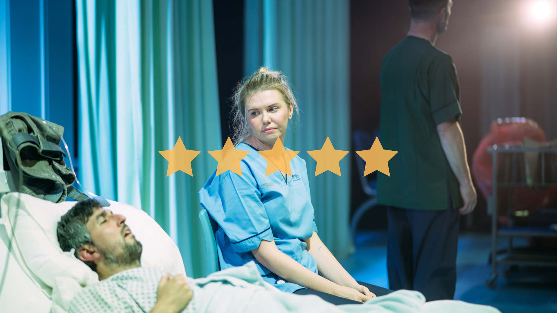 The set up is almost farcical: the department is severely understaffed, an incompetent nursing student (Betty Valencia) has been sent to help, and to top it all off, Ani mistakenly tells the wrong patient that they are dying. Strangely, it works perfectly with the serious messages in the play, and Nada-Rajah hits an ideal balance, ensuring that the comedy doesn’t take away from the problems highlighted within the NHS. For instance, Mr Turnbull’s hallucination where there is no healthcare system and he has to pay a large fee to be treated by “muses” is highly entertaining, yet demonstrates how student nurses and international workers are vital for the NHS to run smoothly.