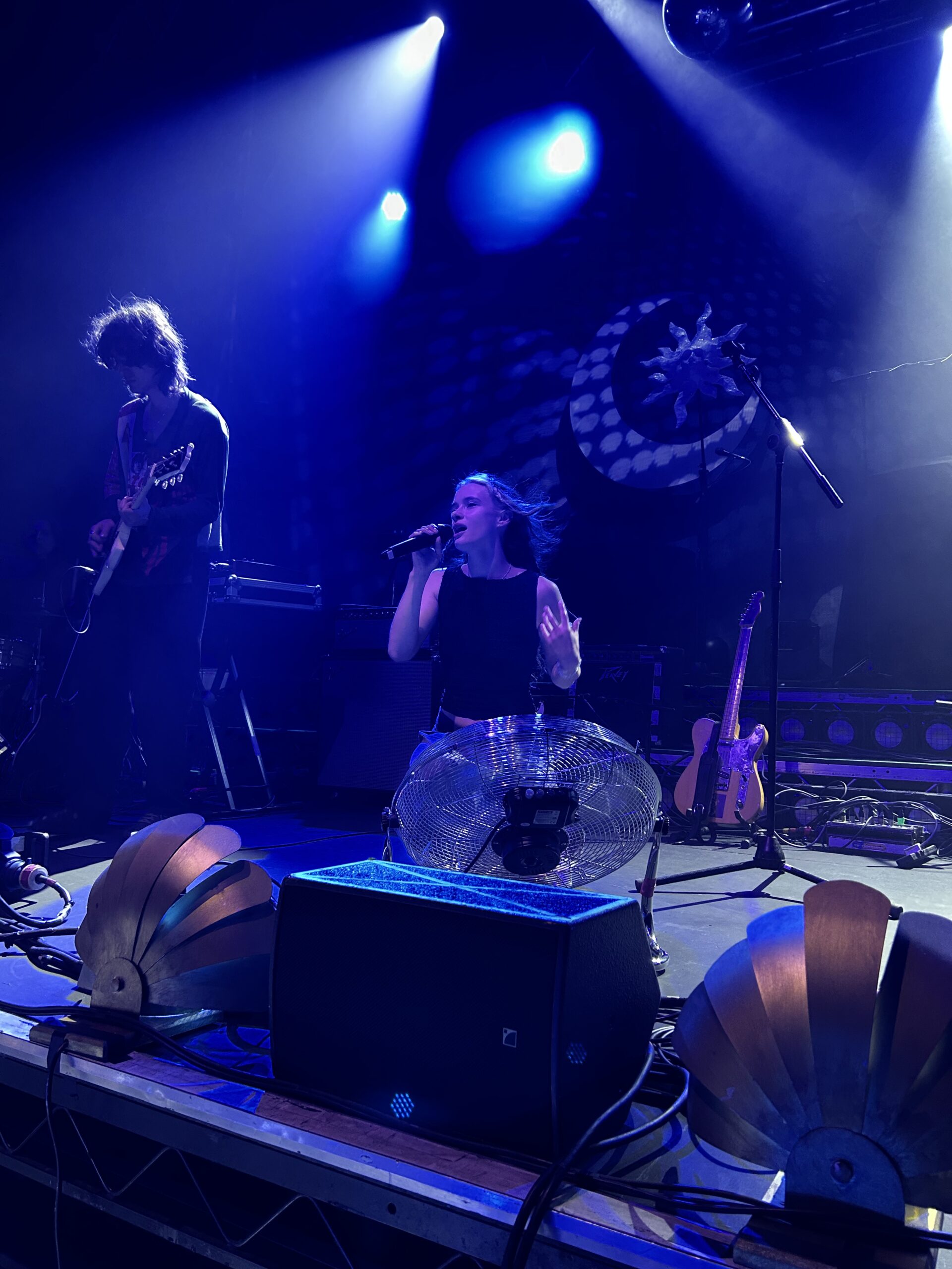The highlight of the set was ‘ALMA’ where Kaeto started by kneeling on the stage, her hair blowing in the breeze from the large on-stage fan. This song sounds beautiful on record but played live it took on additional depth. With a real earworm of twangy guitar, over shimmering drum beats, and perfectly crafted bass notes, Kaeto’s vocals were ethereal. The angelic imagery was enhanced as Kaeto swayed and used her arms to emphasise the lyrics of this gentle love song.