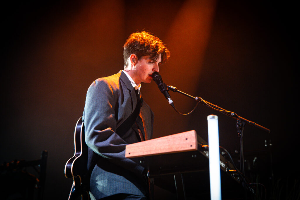 But the real stand-out moment was when Ellis decided to “mellow things out” with another older song – ‘Don’t Make A Scene’. The shift from super amped up, electric fizz to a more pared-back acoustic sound was beautiful. An atmosphere of slow, golden warmth was created with a backing track of birdsong in the background and slow pulsing of deep orange lights. The experience felt like golden hour, and the audience swayed along, savouring the breather and the sense of connection: with each other, with the band and the band amongst themselves too.