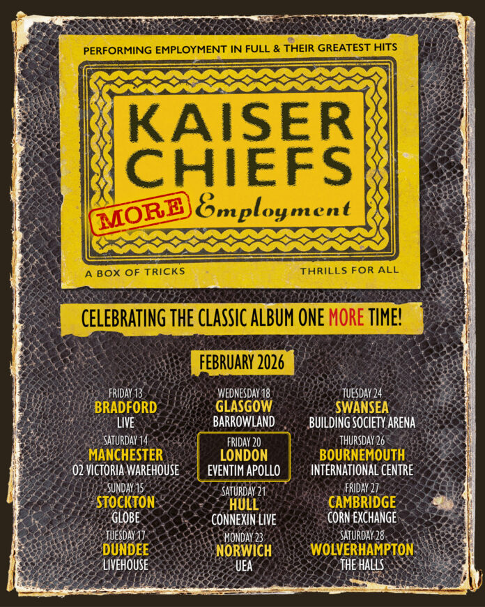 Kaiser Chiefs have proven time and time again that they dominate the stage, and the More Employment Tour 2026 so far has only gone to reinforce the band’s reputation. Celebrating 20 years since the release of the band’s platinum-selling debut album, the tour is perfect for fans old and new, with the Leeds rockers performing Employment in full, followed by a select second set of hits and fan favourites.