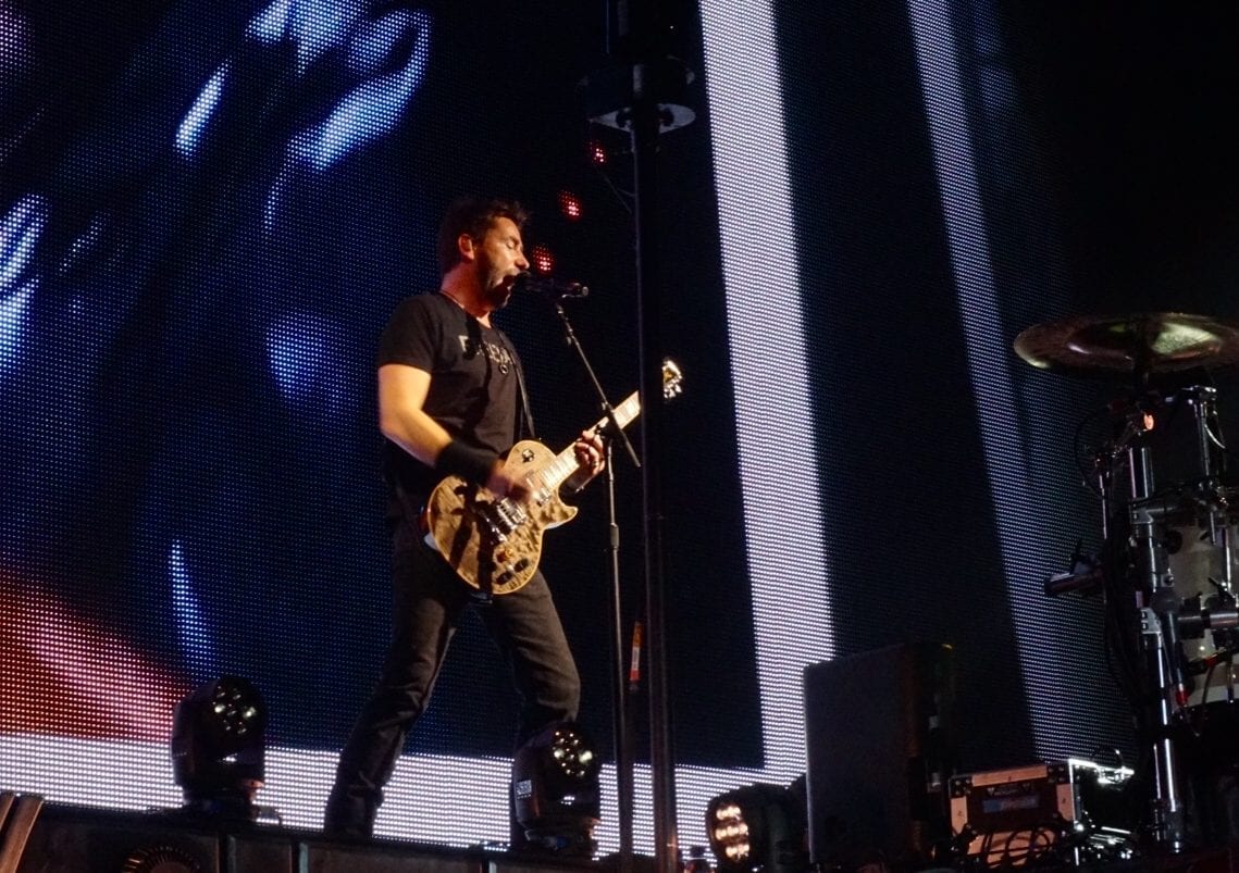 Nickelback: one of the biggest rock bands in the music industry. You just have to hear the name and almost everyone will start singing “and this is how you remind me”. After forming 22 years ago, Nickelback have released several albums, each including some of the worlds biggest tracks to date. Although people love to criticise, with a sold-out UK tour, including a stop in Birmingham, it’s fair to say that the Canadian rockers are still a success. Visiting the Genting Arena on the 10th May, Nickelback intricately weaved their latest album with the nostalgic old classics, putting on a lively, energetic show.