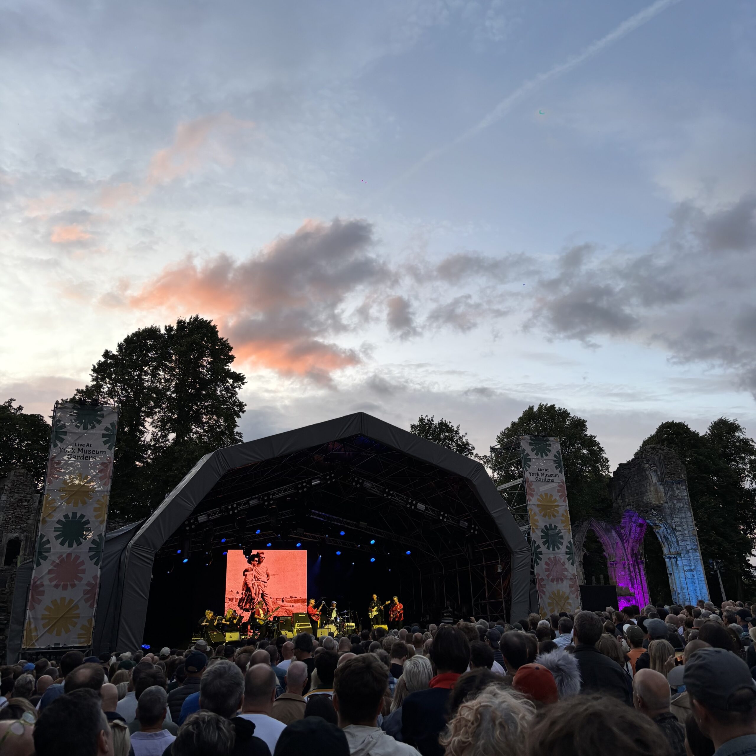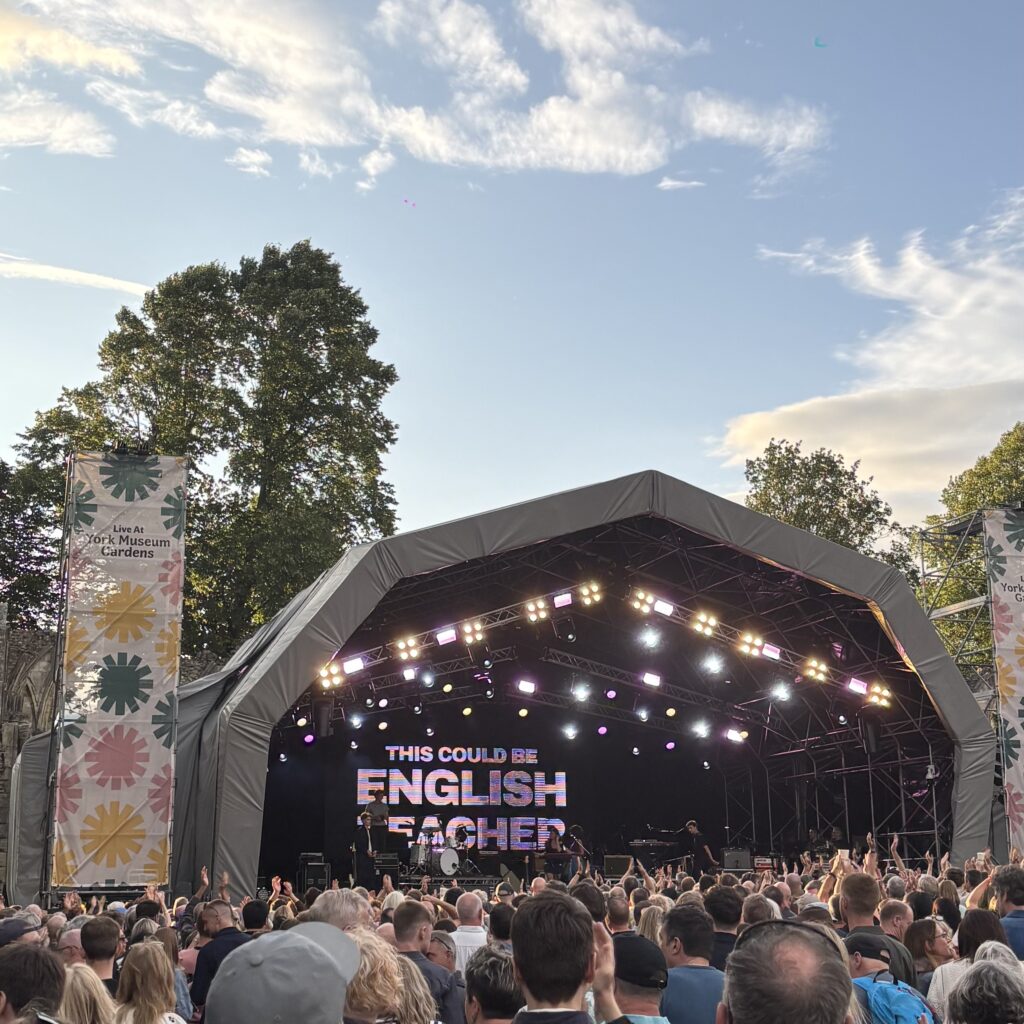 As the summer sun began to illuminate the remnants of St Mary’s Abbey behind the stage and the venue shone with golden hues, the eagerly anticipated English Teacher graced the stage, entering to Oasis’ ‘Supersonic’—a timely ode to the string of reunion tour dates that have dominated the headlines in recent weeks.