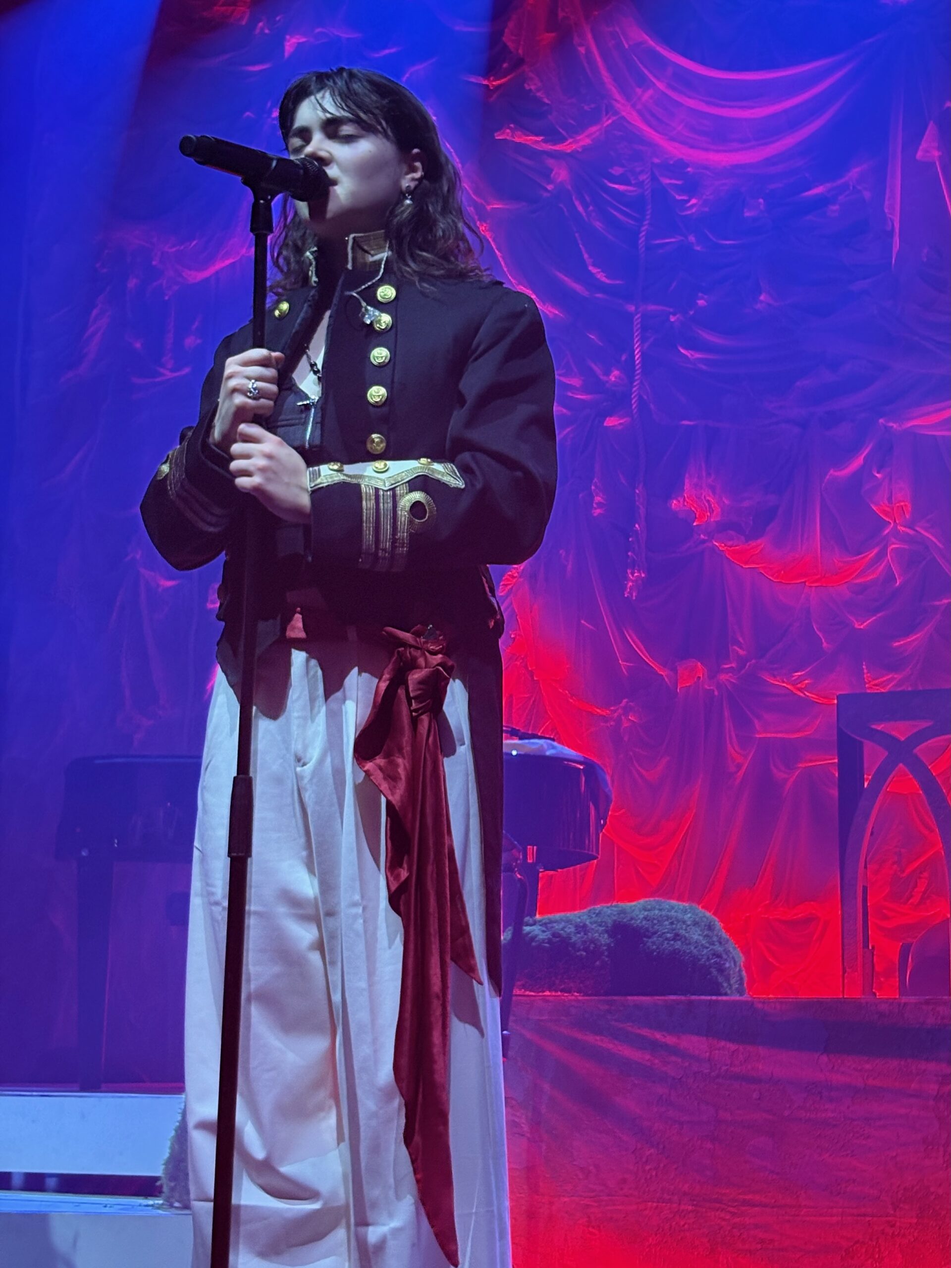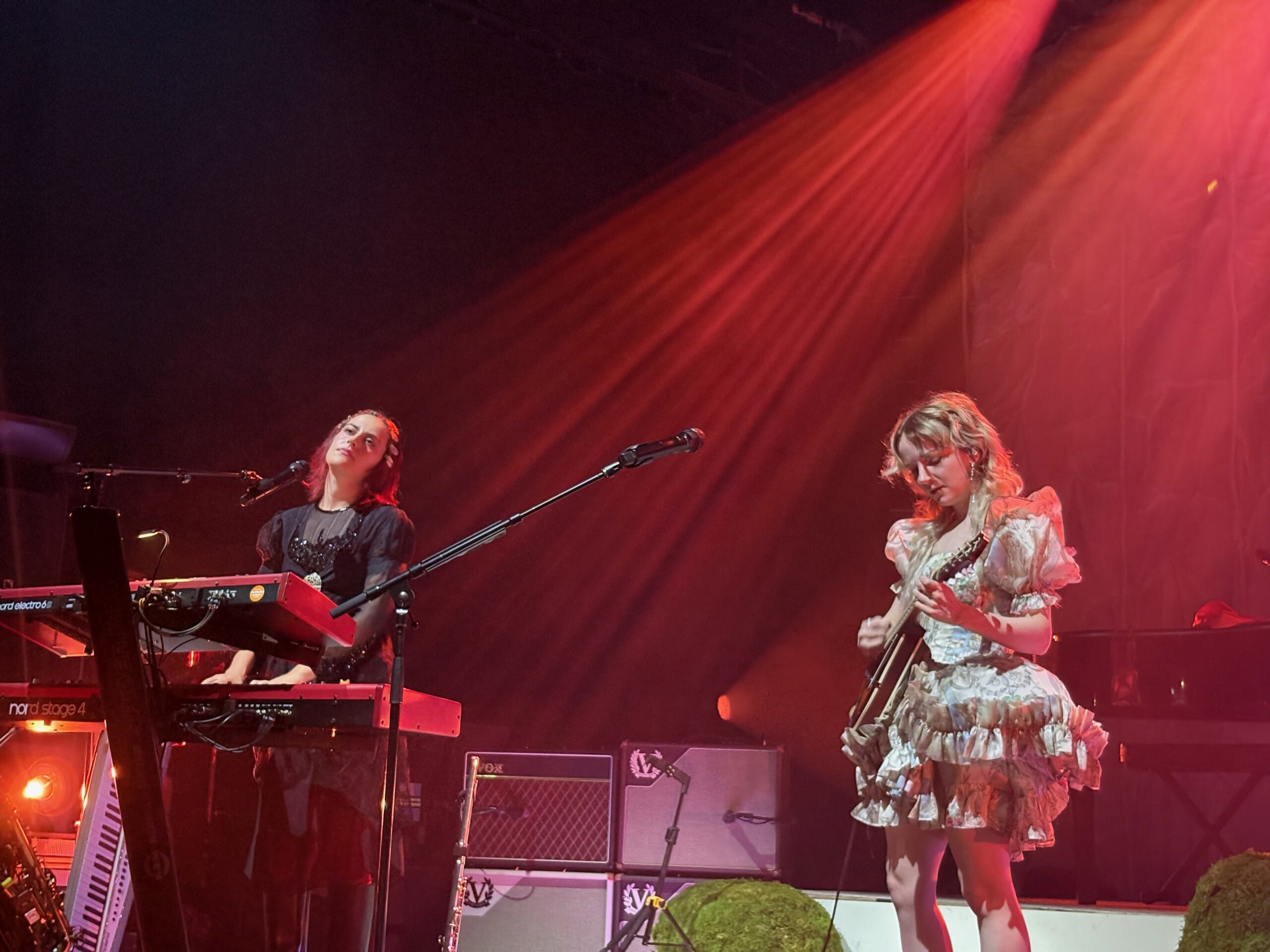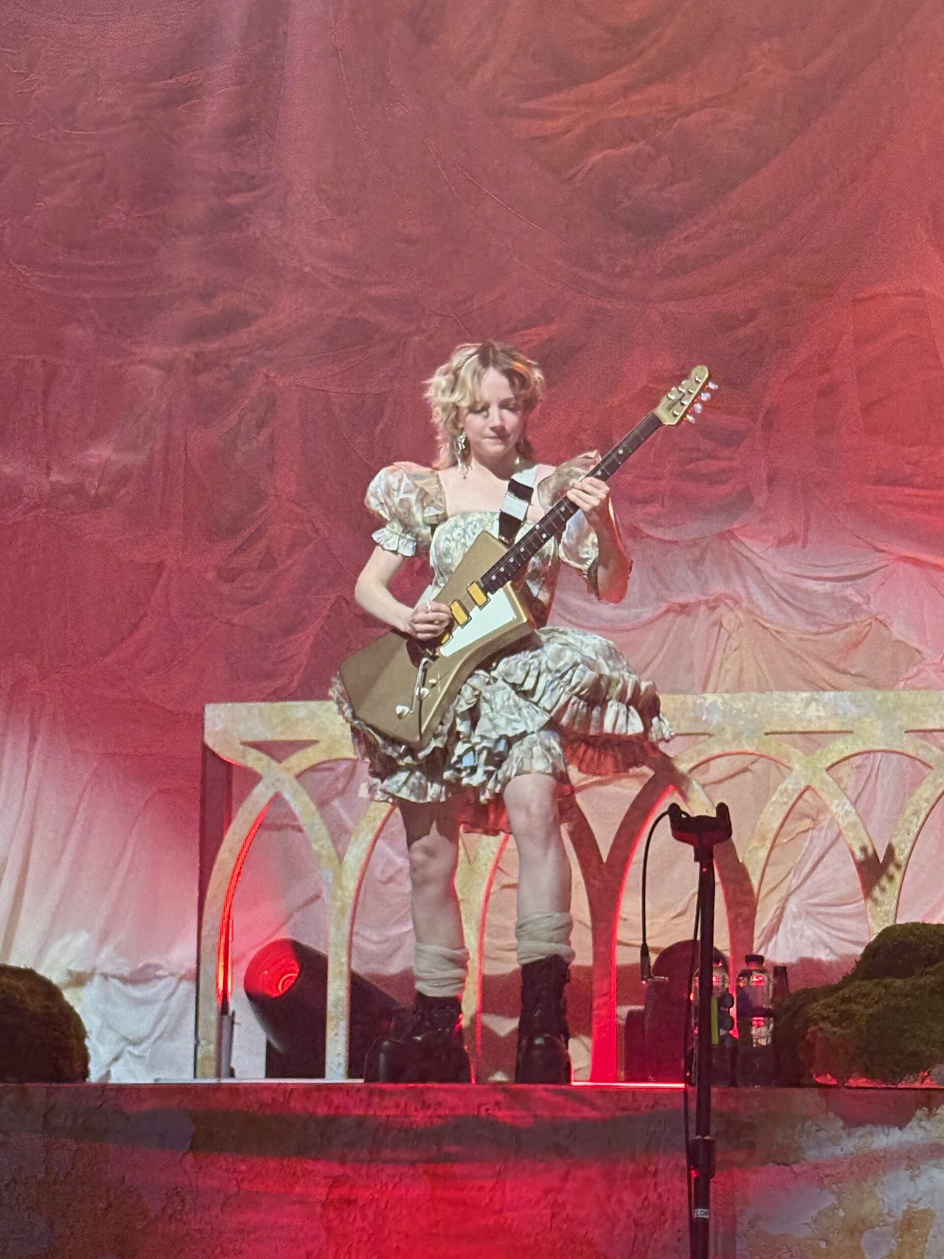 ‘Count the Ways’ followed, with its own theatrics: Roberts and bassist Georgia Davies stood shoulder-to-shoulder at the rear while Morris, with a falsetto flourish, leaned against Aurora Nishevci’s piano. During the song, a fan in the pit passed a lesbian pride flag to Morris, who smiled, waved it proudly, then laid it across the piano.