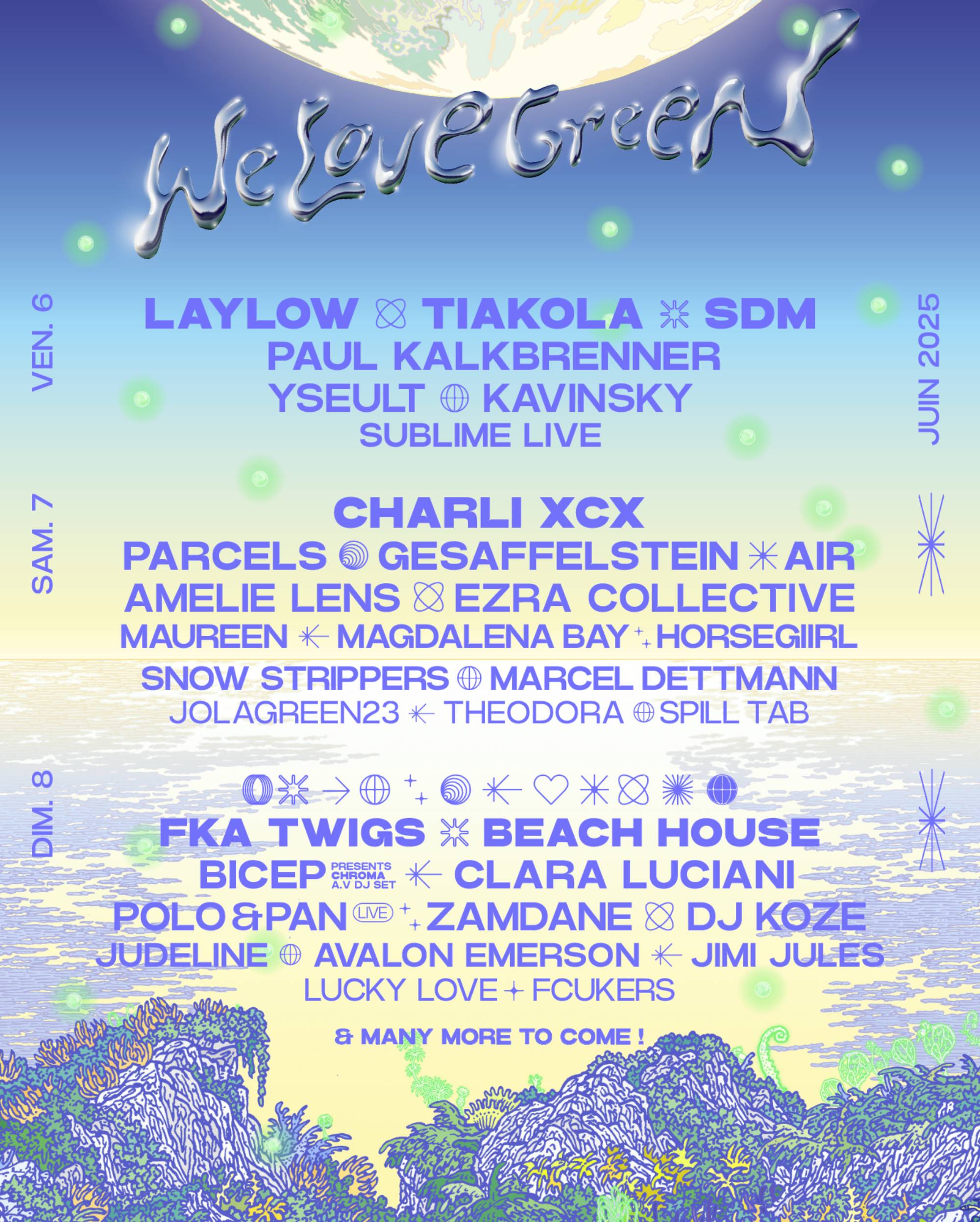 The first thing that hits you when arriving at the bucolic Bois de Vincennes, the biggest wooded area on the outskirts of Paris, is the overwhelming sight of bright brat green outfits, popping out from in between the trees: if we didn’t already know it, most of the 40,000 attendees showed up on the Saturday for Charli xcx’s only concert in France of the year. The dominating colour is a fitting accompanying aesthetic for We Love Green’s motto: for the past 15 years, it has prided itself on being one of the most sustainable music festivals out there. Everything, from the transport of festival goers to the catering, which is 100% vegetarian, as well as the impact on the surrounding biodiversity, has been carefully thought-through to minimise impact on the environment. Does that mean superstar headliners swap up their jets for a night train? Maybe not.