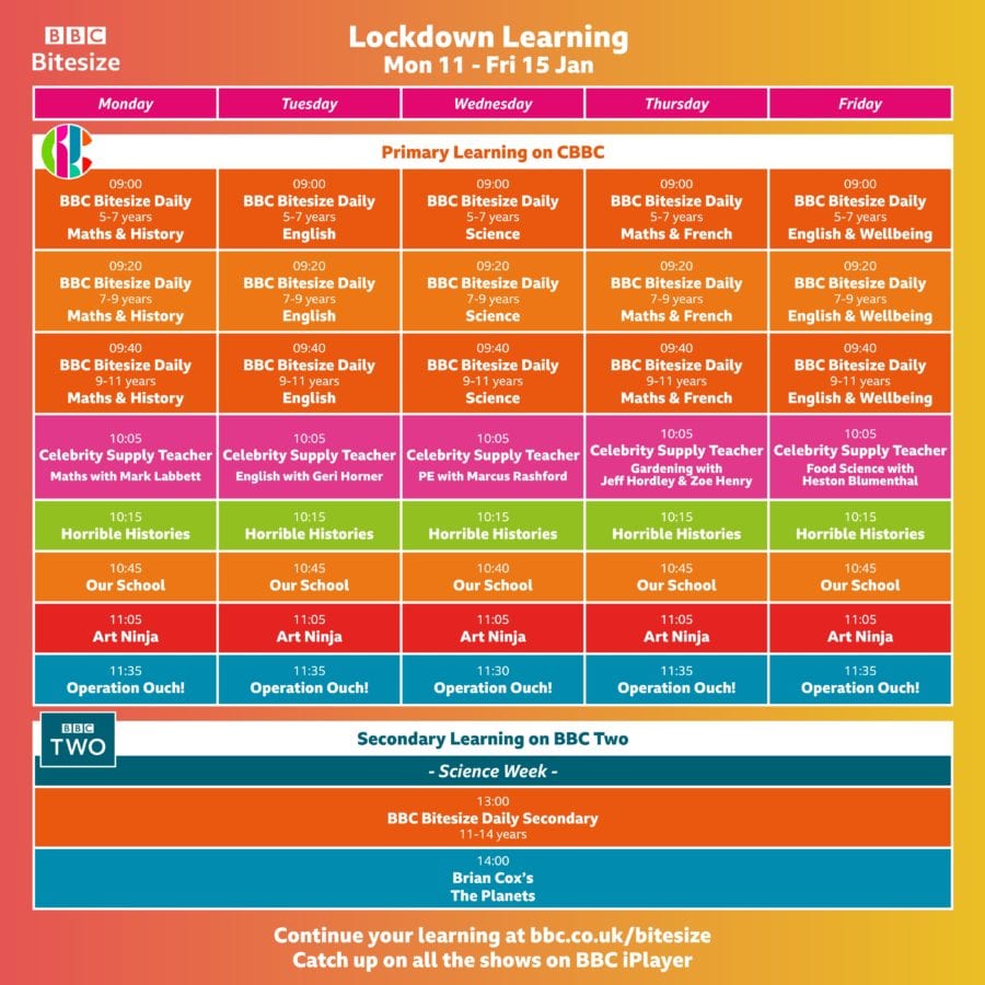 Starting on Monday 11 January, children will be able to access a wide range of programmes ranging from Science and Maths to English and History.
