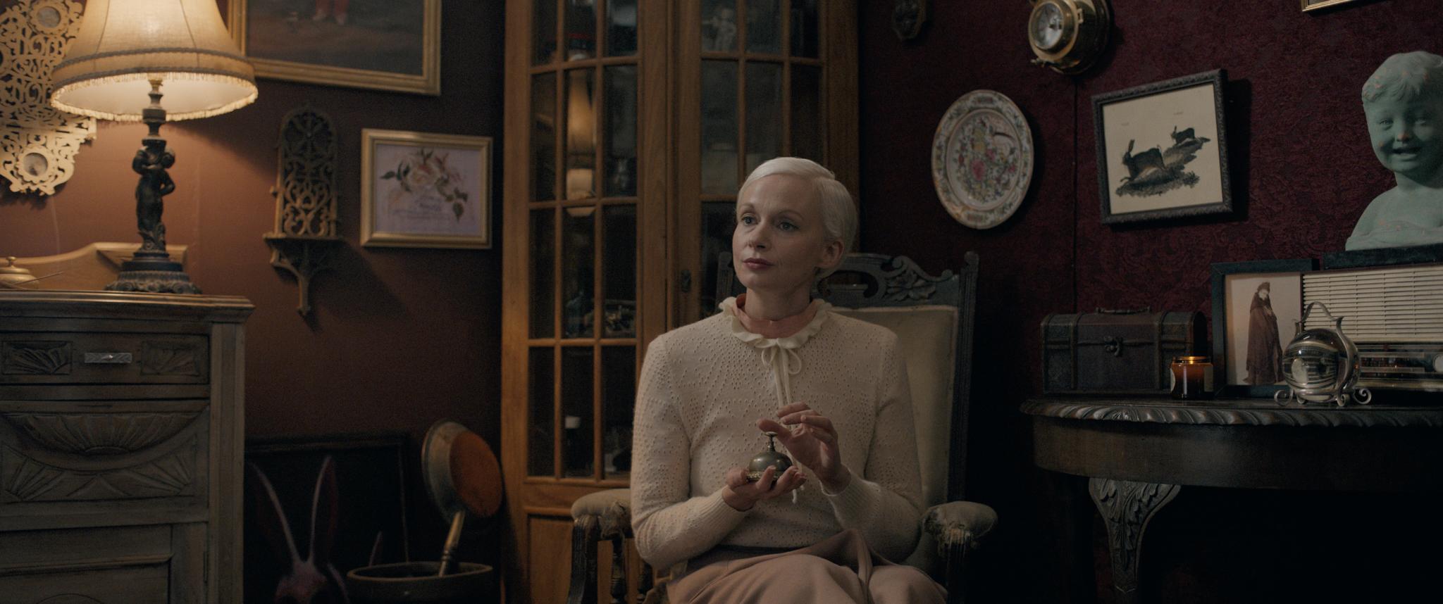 The setting plays a major role in Oddity. Ted lives in a castle-like house in the middle of nowhere, which he shared with Dani and where, following her passing, Yana joins him—perhaps against her better judgement. Whether it be the lack of phone signal or the old-timey gas lamps, isolation is presented two-fold in a literal and a figurative sense, with the rural land effectively playing another character in this film and the latter applying particularly to Darcy in the absence of her sister.