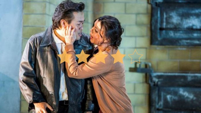 Cavalleria Rustica’s famous intermezzo, rendered with sultry elegance by conductor Anthony Pappano, is contrasted with a moonlight meet-cute between Pagliacci’s Nedda and Silvio. There is always beauty beneath the deliberately drab yet hyper-realistic sets (one can almost smell the dirt lining the sun-baked Sicilian walls) but it is too often just out of reach for the worlds of Cav and Pag.