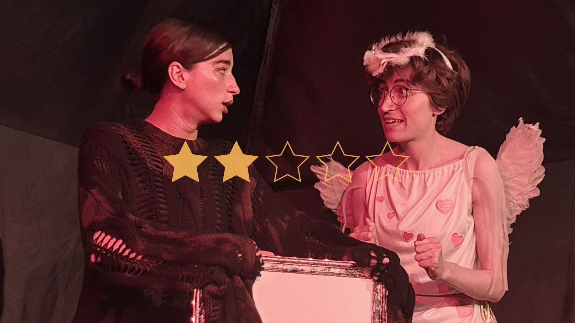 Kestrel Eye Production’s No Room At The Inn promises a witty and absurd comedy, but sadly, fails to achieve that. Opening in the depths of Hell, good angel Verchiel has received a message from God commanding they fix the cold-hearted innkeeper Issac and convince him to let baby Jesus be born in a manger in his stable. After lots of persuasion, pessimistic Belial comes to help, but the pair find they have very differing views on how best to sway Issac.