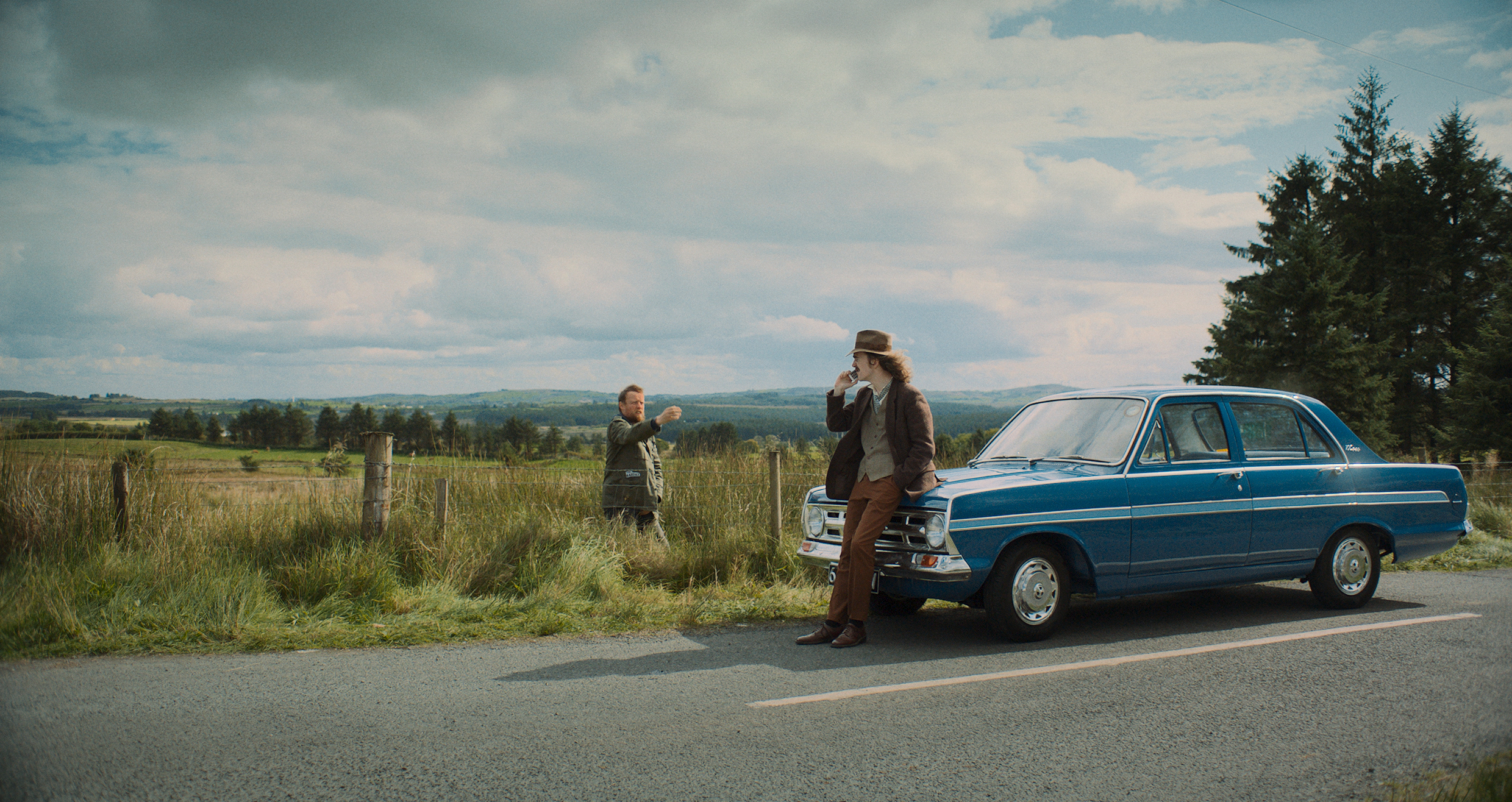 With the bailiffs looming, Elvis spots an online listing for second-hand vinyl, evidently being sold by someone ignorant of its worth: a stash of old rare recordings from various blues and jazz legends, which they estimate to be worth £40,000. The only trouble is that the farmer selling these lives near Cork while the boys are up in Omagh, Northern Ireland, so the only choice is to hit the road—in Elvis’ mum’s car. Their lack of both money and urgency allow the writers to conjure up obstacles along the way, including brief, surreal acting turns from Maura Higgins and former Pussycat Doll Kimberley Wyatt.