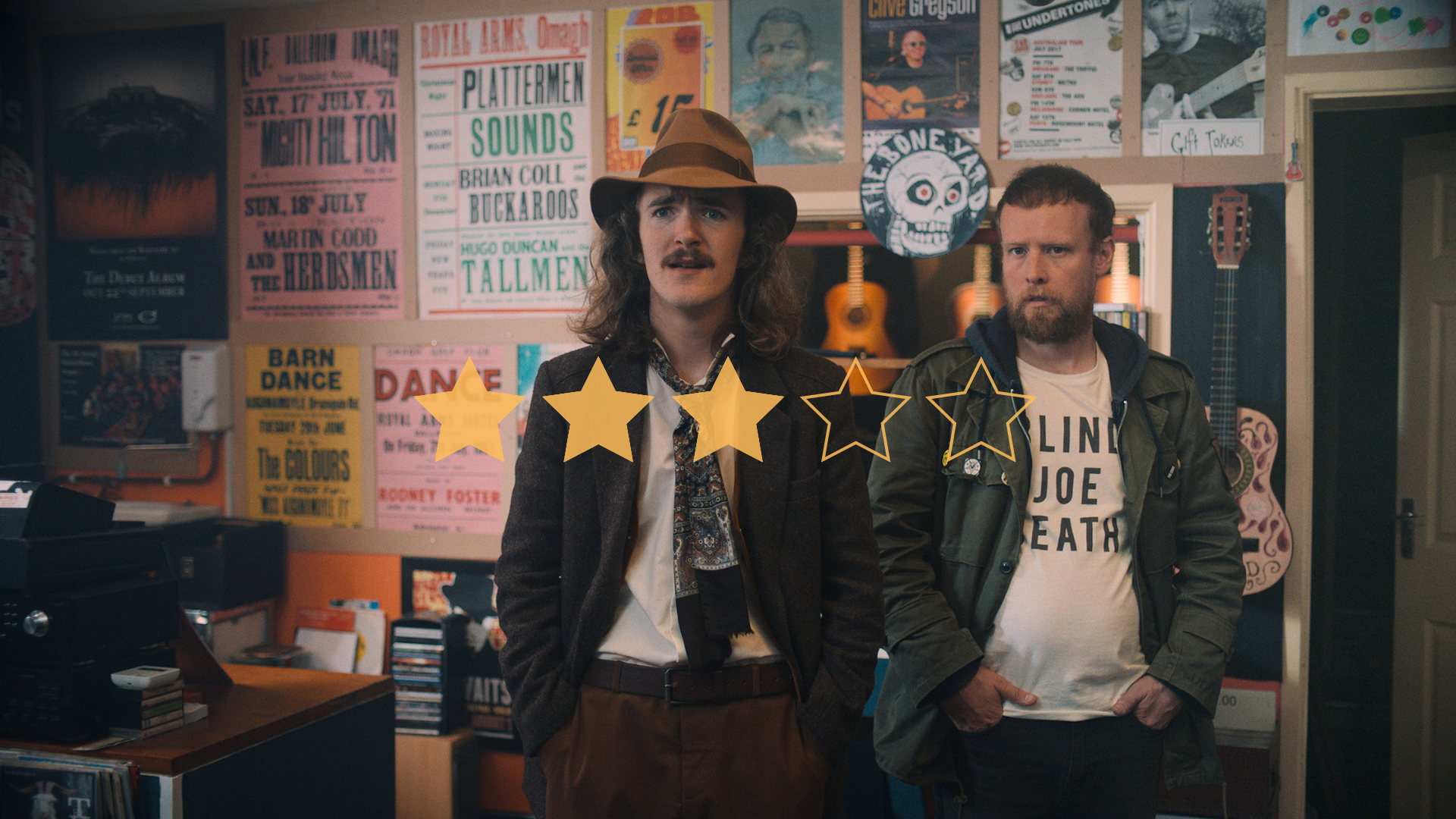 Meanwhile, Dermot’s fading prospects as a pub singer in Omagh look brighter upon reuniting with old bandmates; could it be that making music, rather than selling it, is his true calling? Ultimately, though these roadblocks are meant to jeopardise the boys’ friendship, the film doesn’t have the heart to truly split them up. It’s a feelgood picture through and through, with stakes just high enough to keep it afloat.