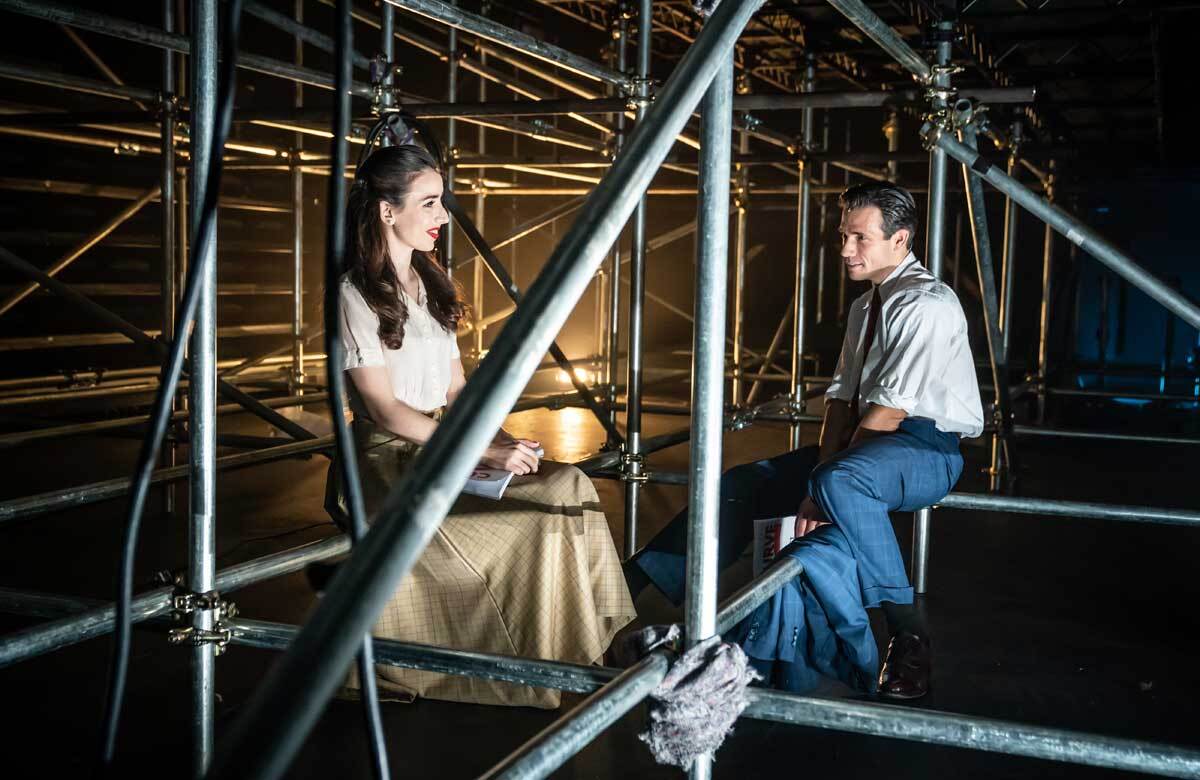 The staging is certainly unique, director Nikolai Foster has the cast using every single inch of the Curve Theatre. In doing so, the theatre becomes a character in its own right, which is very effective. Scenes take place in the theatre’s seats, in backstage areas, and in scaffolds, which really makes the production feel dynamic and fresh. I also loved how visible the backstage crew were throughout the show; it felt very pertinent to show how vital backstage workers are with the current context of the pandemic.