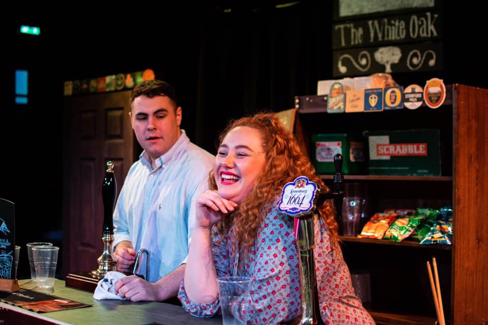 For starters, this production’s set was beautiful and incredibly realistic. Borrowing real elements of a local Leeds pub, The Packhorse, Two’s set designers (Ell Johnson, Talia Simmons and Charlotte McRae) have to be congratulated for their stroke of genius when coming up with this. This set design went hand-in-hand with Gibson’s decision to direct Two immersively; I have to say, I genuinely felt as though I was looking in on an actual pub, which shows just how well these creative decisions worked. After noticing how happy members of the opening night’s audience were when the show’s characters picked them out and started a conversation with them, I really hope that the cast recieved the same kind of response every night, because this kind of encouragement definitely had a positive impact on their performances.