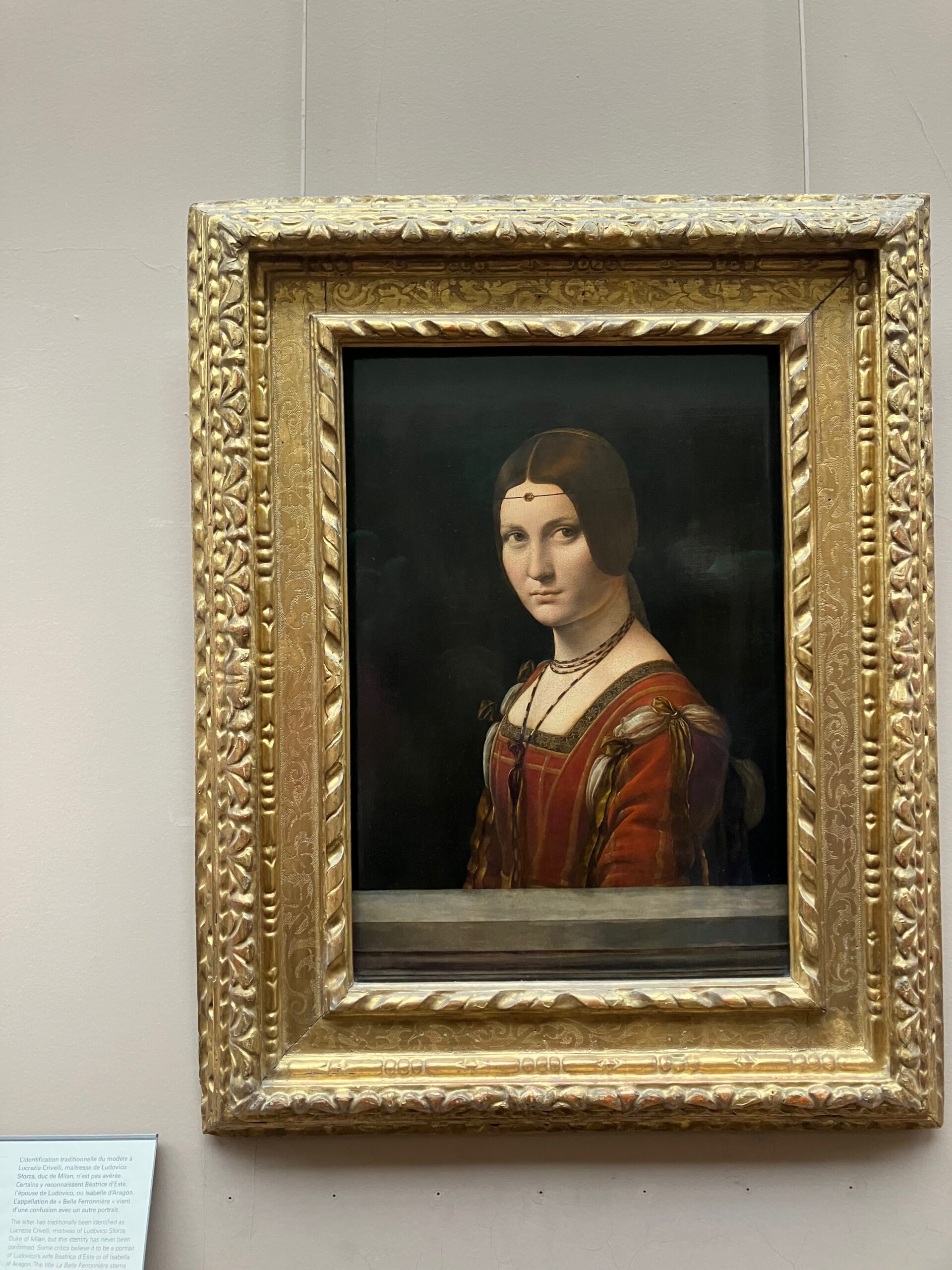 If you came to the Louvre desperate to see the work of da Vinci, the Portrait of a Woman of the Court of Milan is less known than the Mona Lisa but nevertheless striking. Against a black background, you can see a bejewelled woman with undeniable beauty whose identity is a mystery.