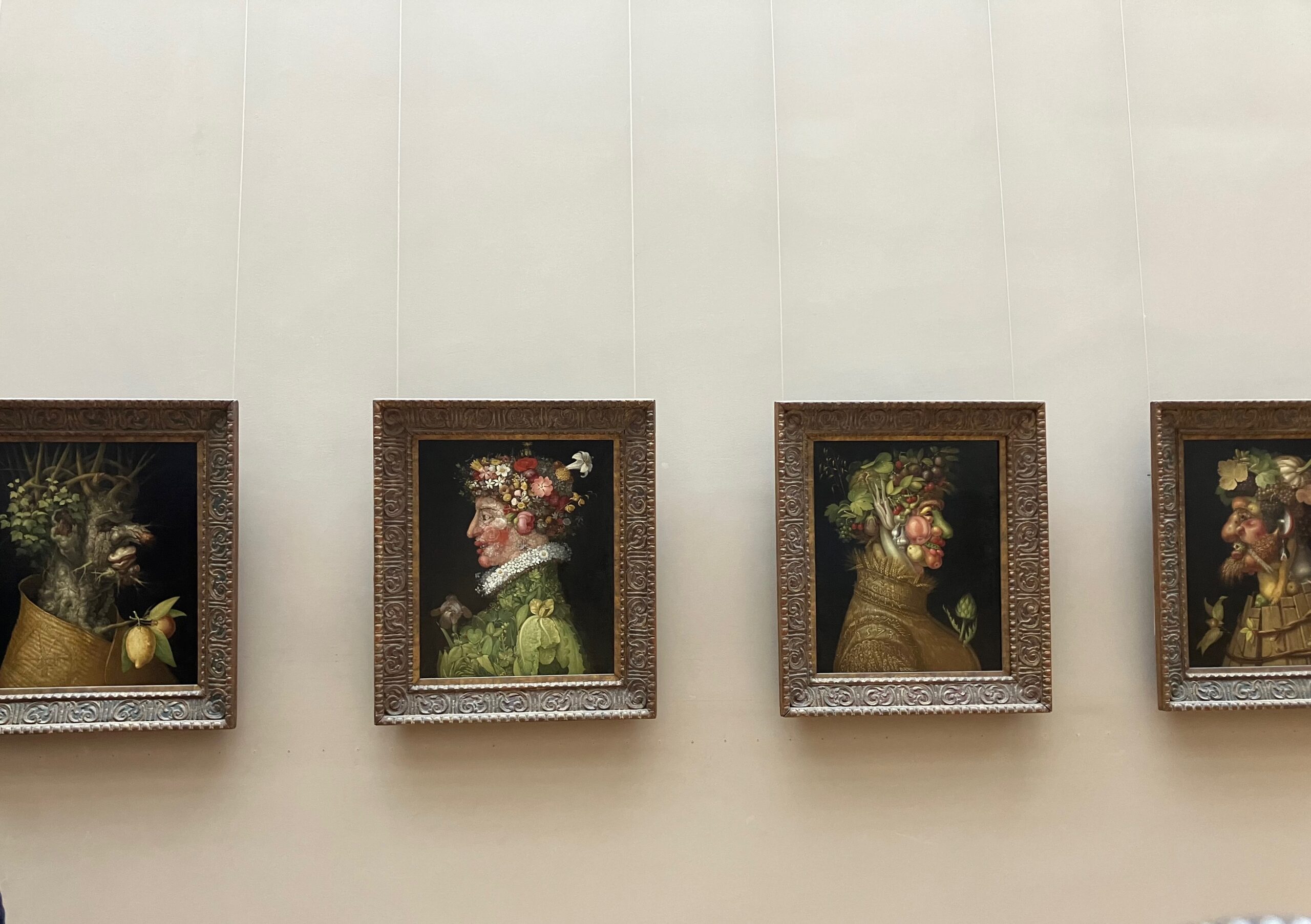 Giuseppe Arcimboldo’s The Seasons is a sequence of four paintings along a wall where each head, made up of one season’s harvest, represents a different stage in life. The images are macabre reminders of the changes time brings.