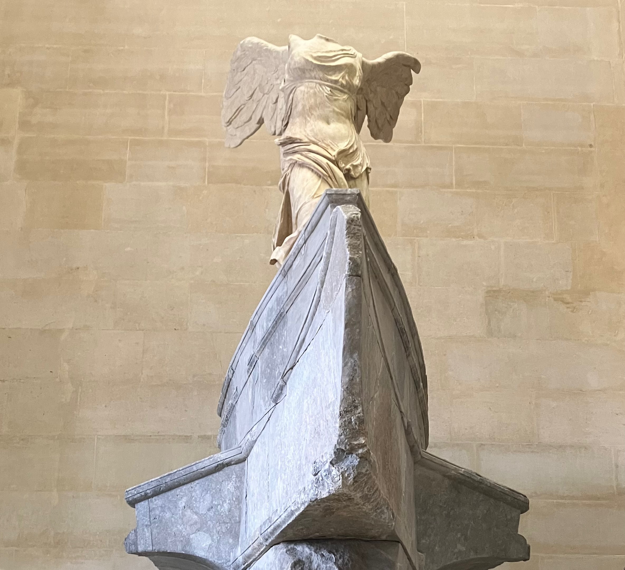 At the top of the Louvre’s main staircase, you’ll see an 18ft white angelic sculpture standing upon a boat. Though lacking both arms and a head, this Greek monument of Nike, the Goddess of Victory, seems animated as she stands triumphant.