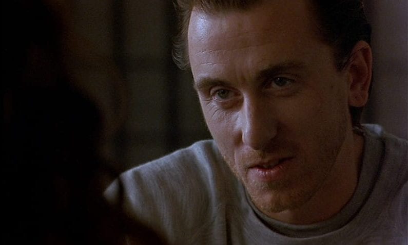 In Pope’s 1996 erotic thriller, Julia Ormond plays Rachel, a beautiful dentist who is in the process of divorcing her husband (Peter Capaldi (!)) who cheated on her. Emotionally vulnerable and feeling impulsive, she begins working two days a week treating inmates at a prison in London, where she is inexplicably drawn to Philip (Tim Roth) – an inmate with a shady past and dodgy tattoos. With Philip on day-release once a week to attend college (Southgate College, it soon becomes clear) an illicit affair ensues, featuring a lot of sizzling chemistry, clandestine shags in public toilets and kinky dentist-patient finger sucking. Of course, this is an erotic thriller, so at some point there is a shoot-out, and someone ends up dead.