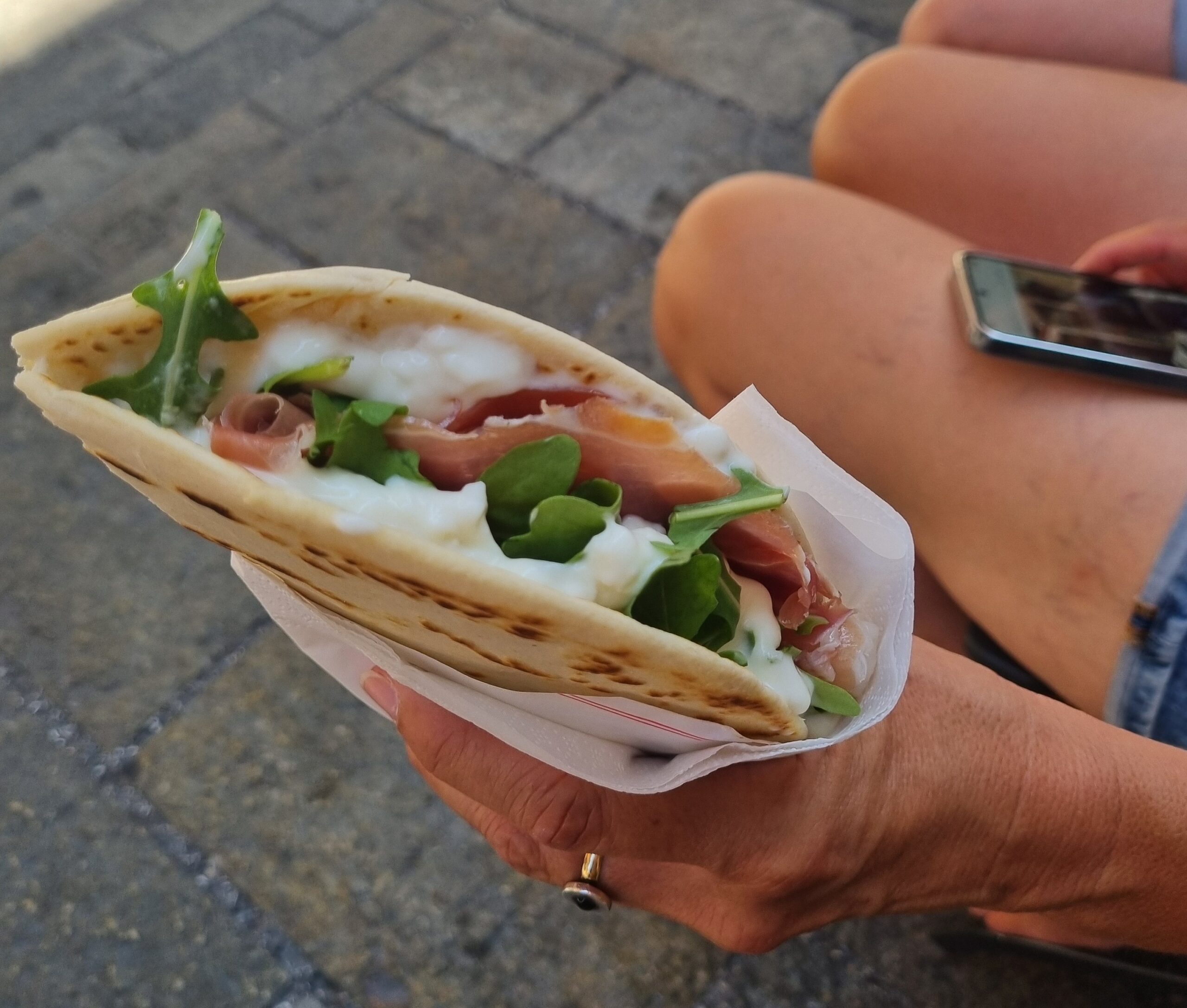 No visit to Ravenna would be complete without sampling local speciality piadina. This unleavened flatbread, stuffed with a variety of delicious fillings, is a meal in itself. Profumo di Piadina: Laboratorio del Palato, open 11am-3pm, offers an extensive menu including Squacquerone DOP – a regional soft cheese €4.50/£3.90, Romagnolo salami €4.50/£3.90 or grilled vegetables and sweet gorgonzola €5.50/£4.80.