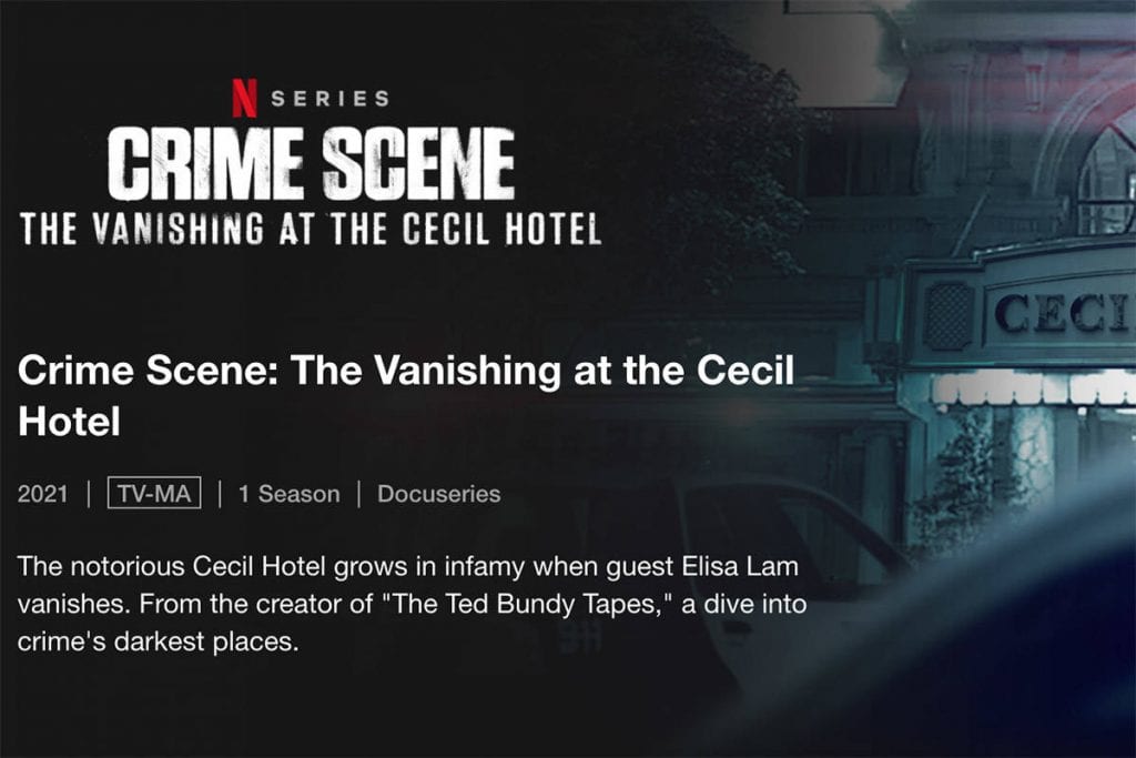 Crime Scene: The Vanishing at the Cecil Hotel, directed by Joe Berlinger and released this February on Netflix, is a four-part docuseries that follows this infamous case. Berlinger contextualises the case within the murky past of the Cecil Hotel, which, since its opening in the 1920s, has been the site of multiple deaths as well as a temporary home to infamous serial killer Richard Ramirez (the subject of another recent Netflix docuseries titled Night Stalker: The Hunt For a Serial Killer). Yet, unlike the Night Stalker documentary which does a good job of discussing Ramirez’s crimes by prioritising the voice of his victims in a sensitive and enlightening way, Crime Scene falls short at the first hurdle, losing itself to unfounded speculation and a misplaced focus on trivial details.