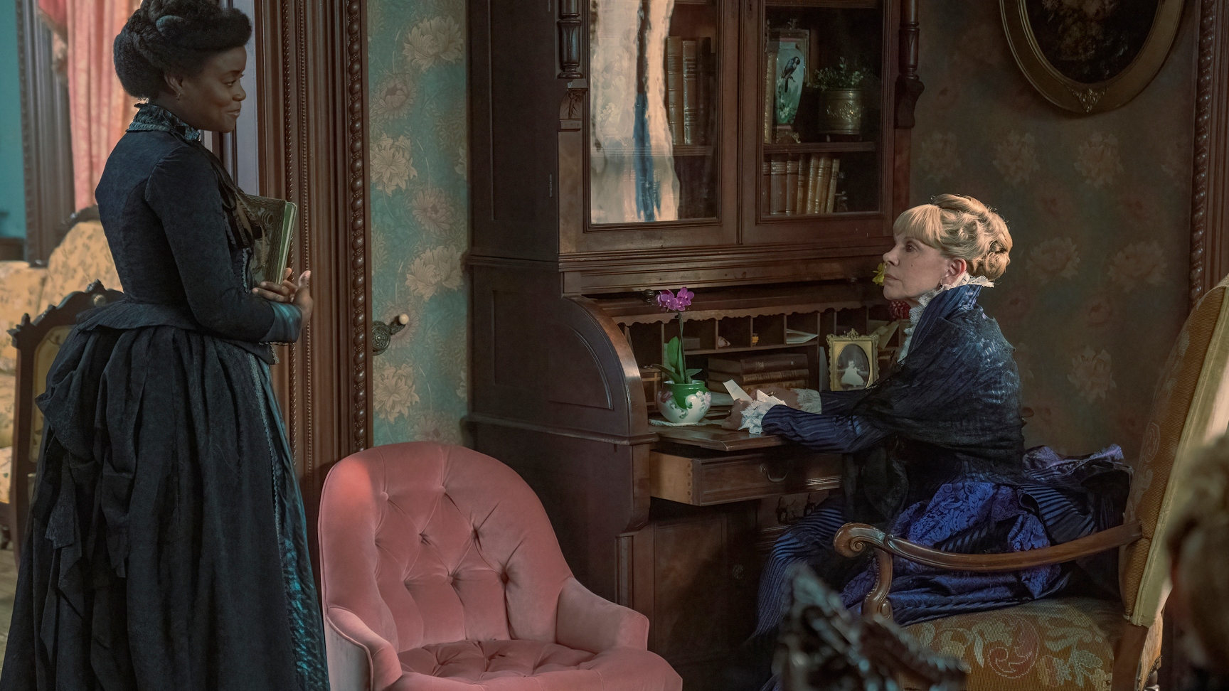 But with all this in mind, all the technical, narrative and soapy flair being noted, Fellowes finds his biggest success in his utilisation of the series’ best performer, the aforementioned Cynthia Nixon. A far cry from her most famous role as Miranda Hobbes in HBO’s flagship Sex and the City (1998-2004), Nixon’s depiction of the wise and soft Ada Brook brings a certain humanity to a series that dedicates much of its runtime to the cold and cutting Manhattan social scene. Whilst Ada was largely used as a foil to her sharp-tongued sister Agnes in the first season, the second finds her finally getting what she deserves: a love and life of her own. With this plotline, the more romance-inclined viewer can find comfort in Ada and pastor Luke’s late-in-life romance that the two portray so youthfully, even if it is marred by tragedy. To describe this story arc as anything short of a fairy tale would be a disservice, and the predictability of it, akin to a fairy tale, only allows for the viewer to relish even further.