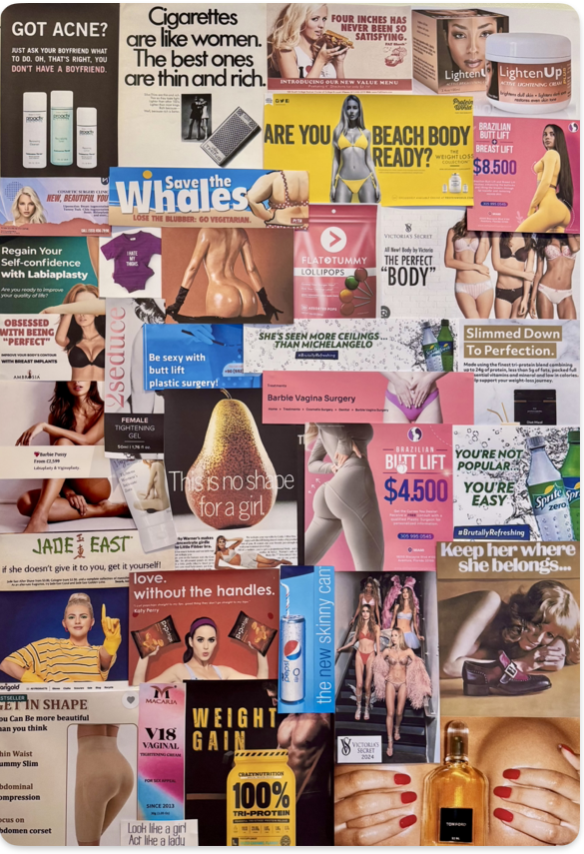 Page started to create archives of the images while at the Royal College of Art. She began thinking about the advertising that she had been exposed to which had a long-lasting impact on her body-image and self-worth. “Those messages go very deep. They are imprinted somewhere in my hard drive,” she told me in an interview. After discovering that an archive did not already exist, she decided to create her own, documenting what she describes as a “generational burden.”