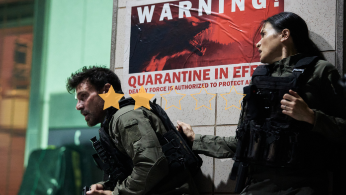 Frank Grillo, as Dr. Wesley Marshall, shoulders much of the film’s weight. A rugged CDC scientist with a knack for action-hero one-liners, Grillo exudes charisma and commands attention even when the material lets him down. Lines like “Bite me” and “Alright, you hairy motherf****rs, come fetch” walk the fine line between campy and cringe-worthy, but Grillo’s delivery keeps them entertaining.
